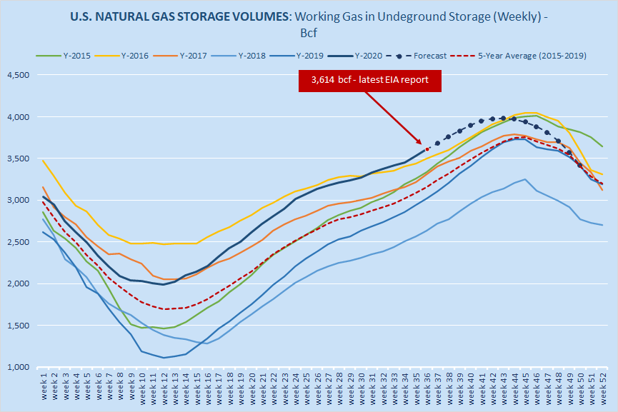 Working gas in storage was 3 756 bcf as of friday september 25 2020 according to eia estimates.